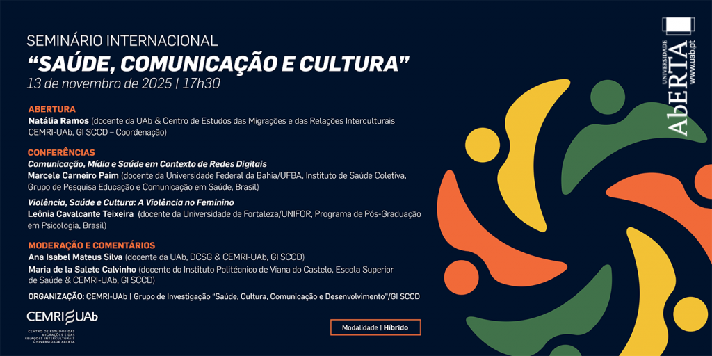 O seminário tem a organização do CEMRI-UAb – Grupo de Investigação “Saúde, Cultura e Desenvolvimento”/GI SCCD.